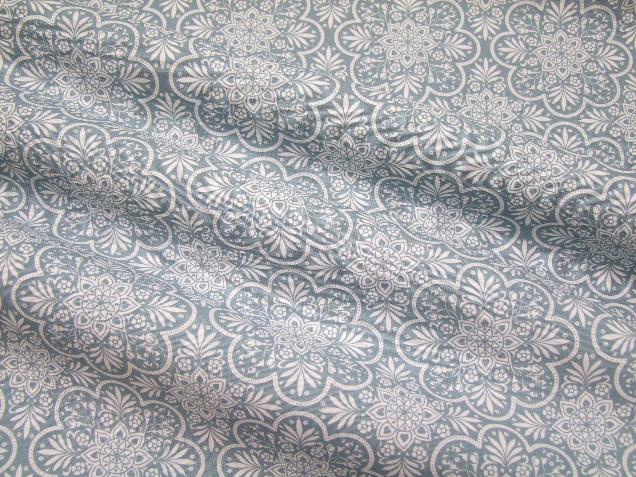 Fehér mandala minta halvány türkizkék alapon