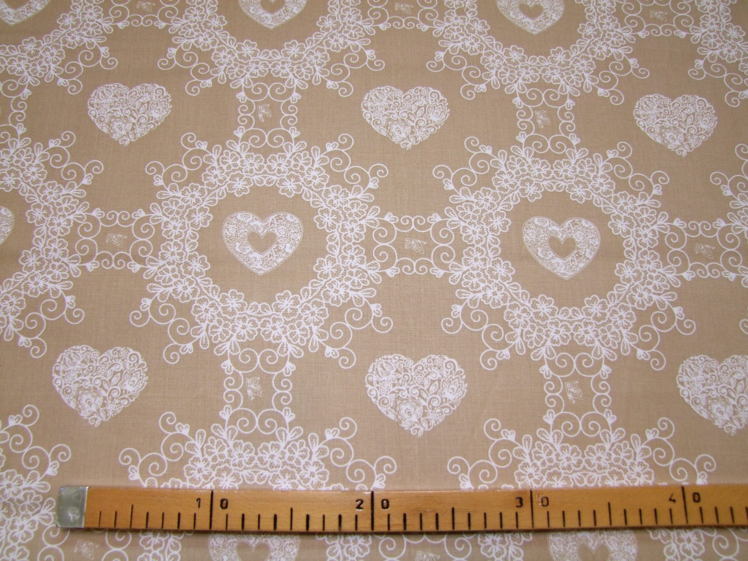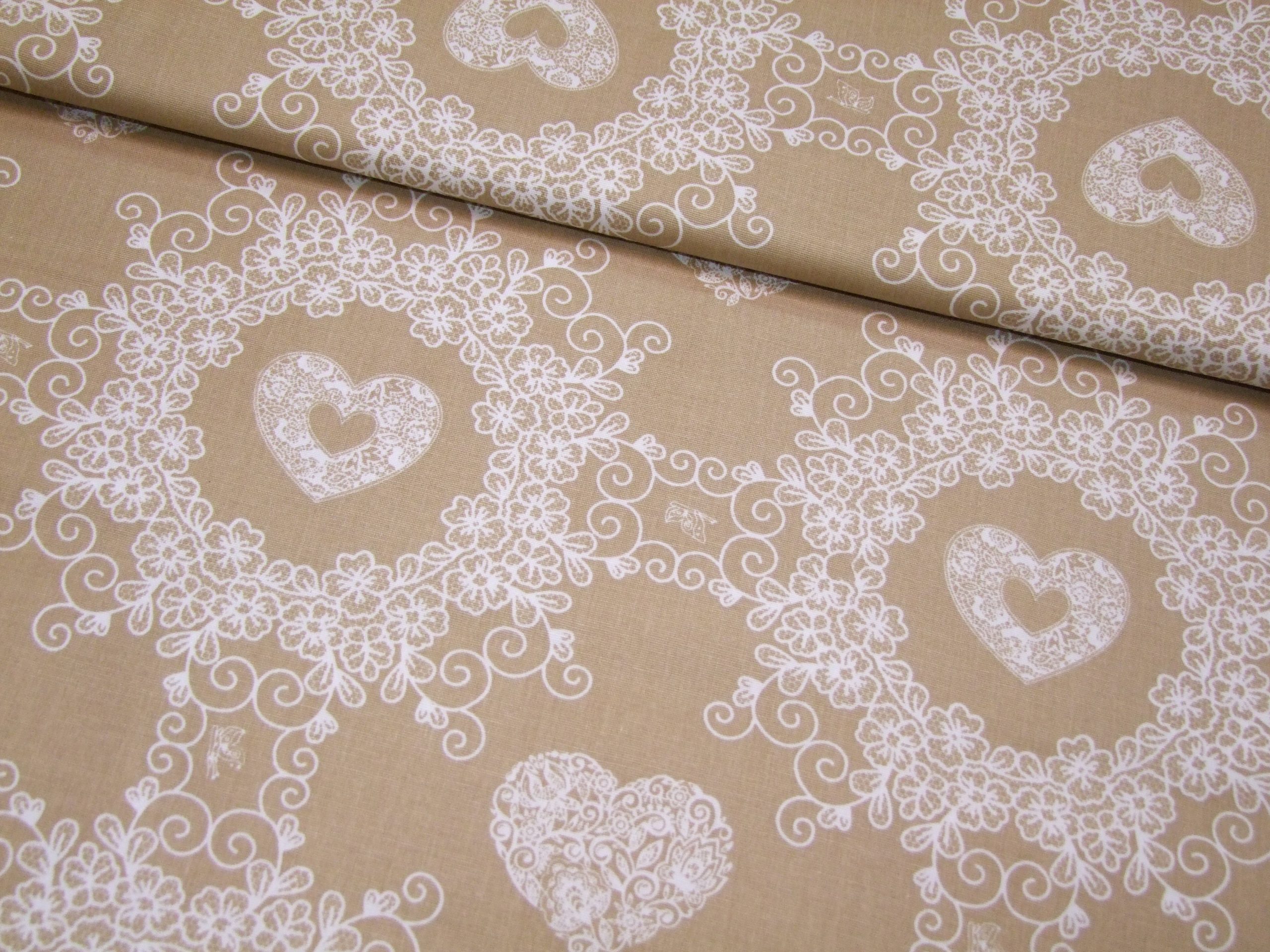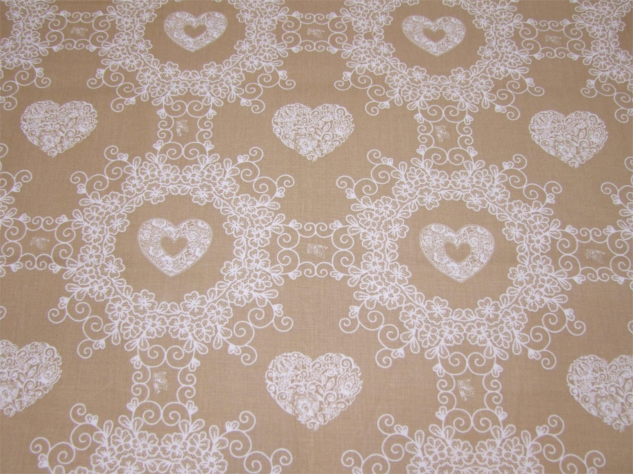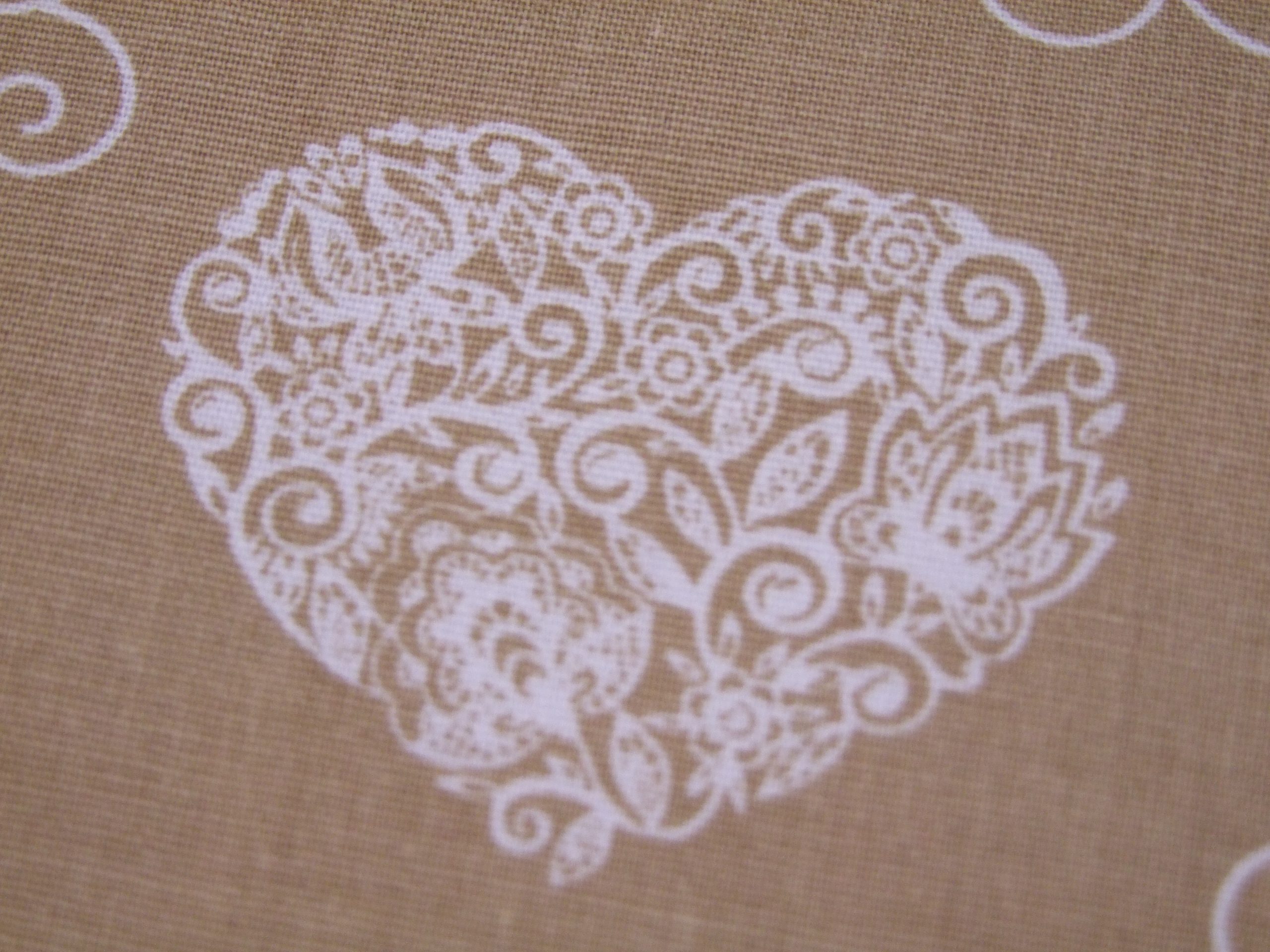 Fehér szivecskék drapp alapon