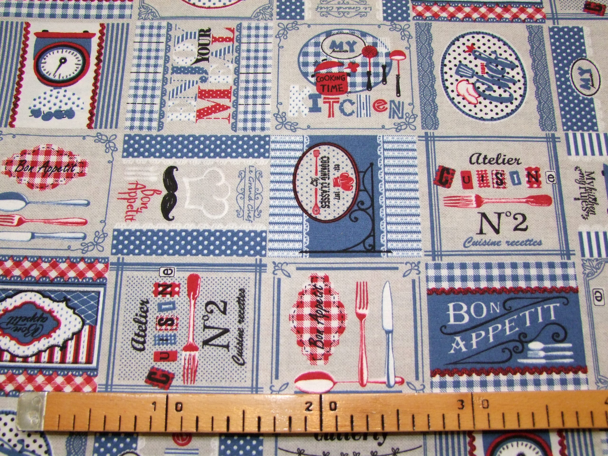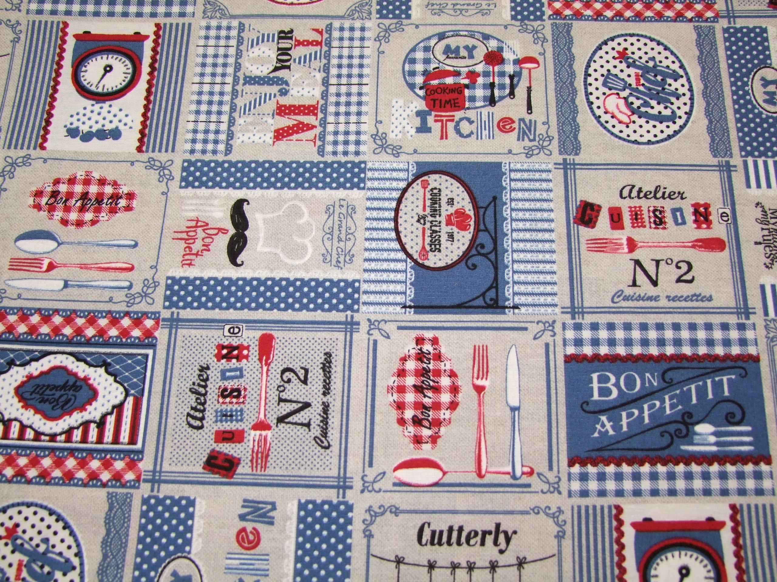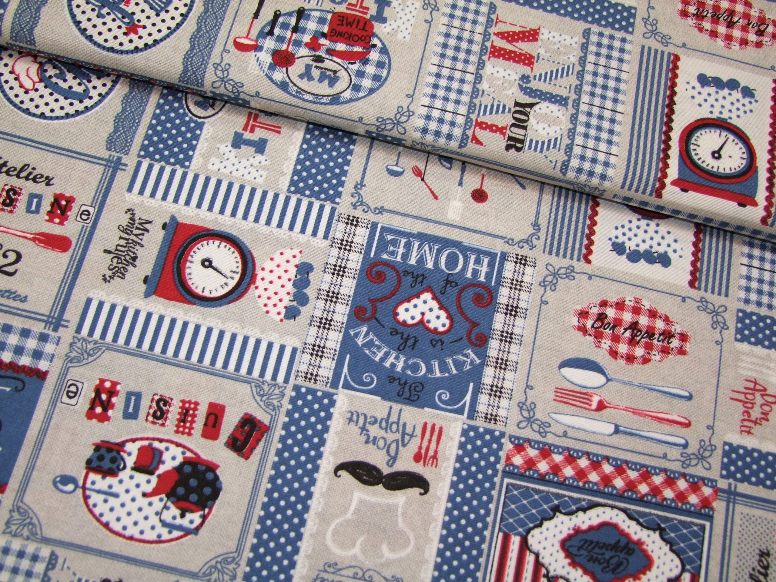 Kék-piros-drapp bistro minta