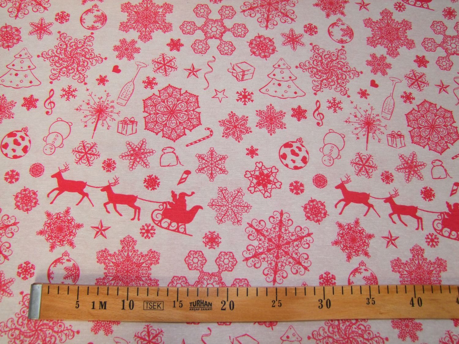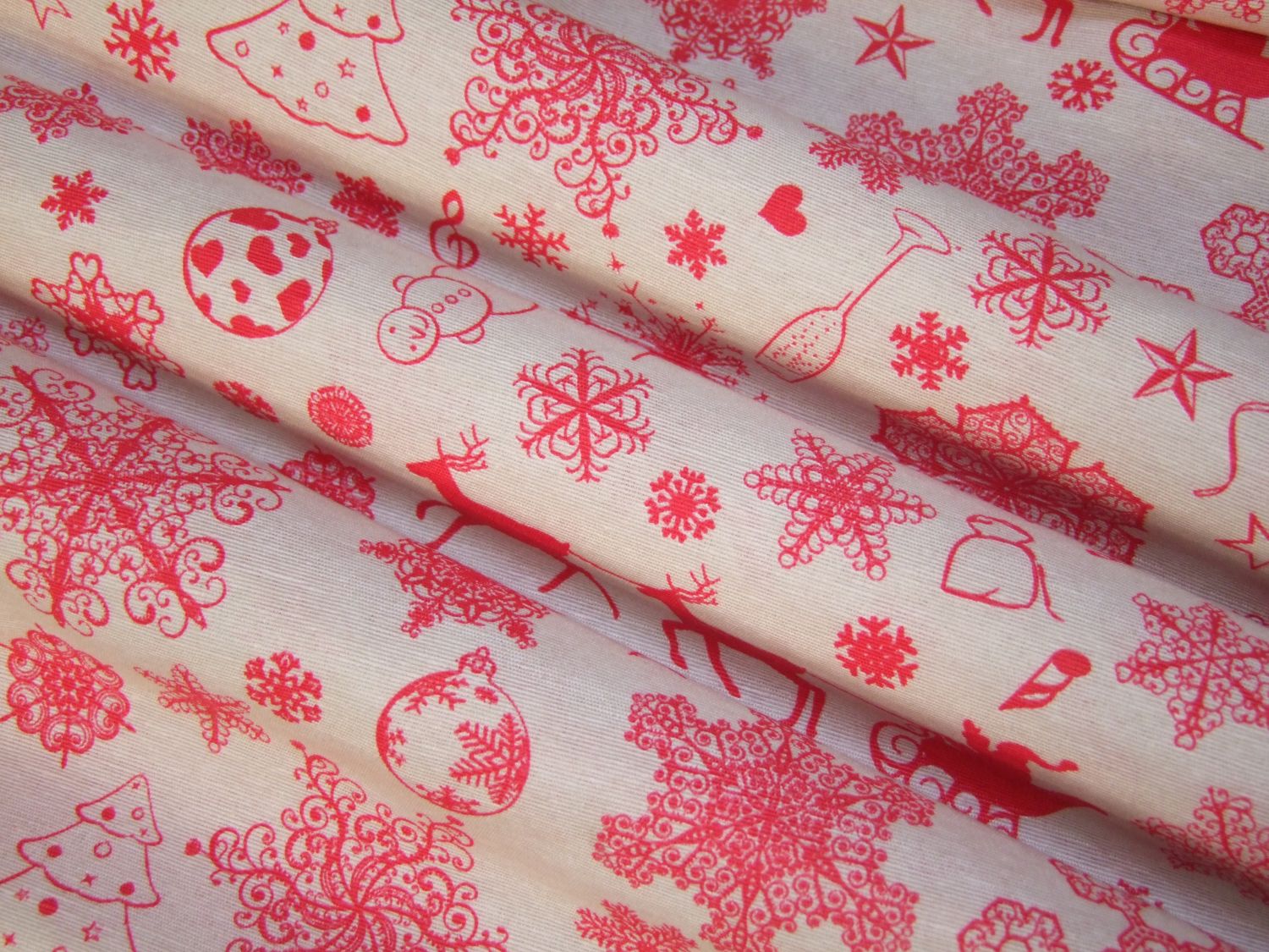 Piros karácsonyi minták drapp alapon